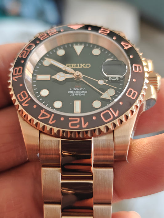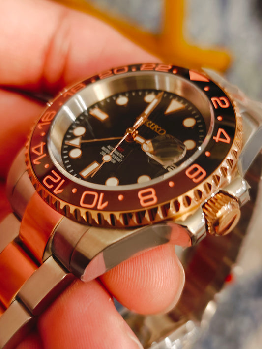 Custom Seiko Rootbeer GMT Rose Gold WatchRegular price $240.00 USDRegular priceUnit price / per-
